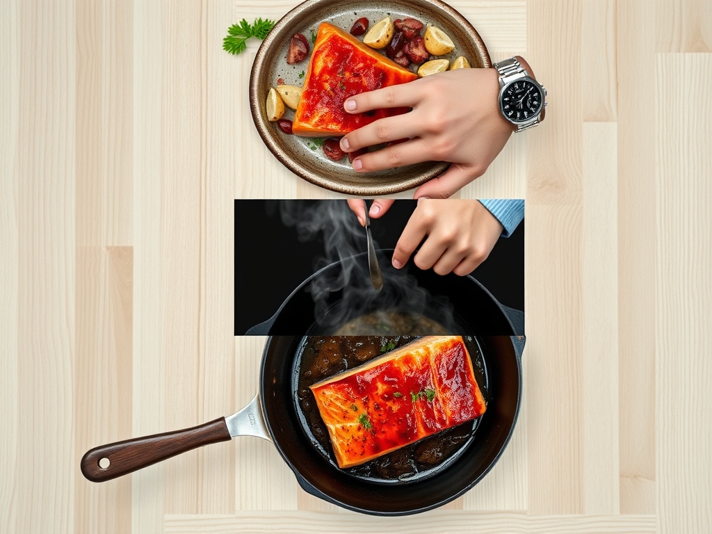 The flow begins with the brine, followed by the preparation of your aromatic base while the fish rests. While the pan preheats, you prepare your side components. The goal is to minimize the time the fish spends away from the heat before it hits the plate. Remember, salmon continues to cook even after it leaves the pan due to thermal carryover, so your timing must account for this invisible heat.
